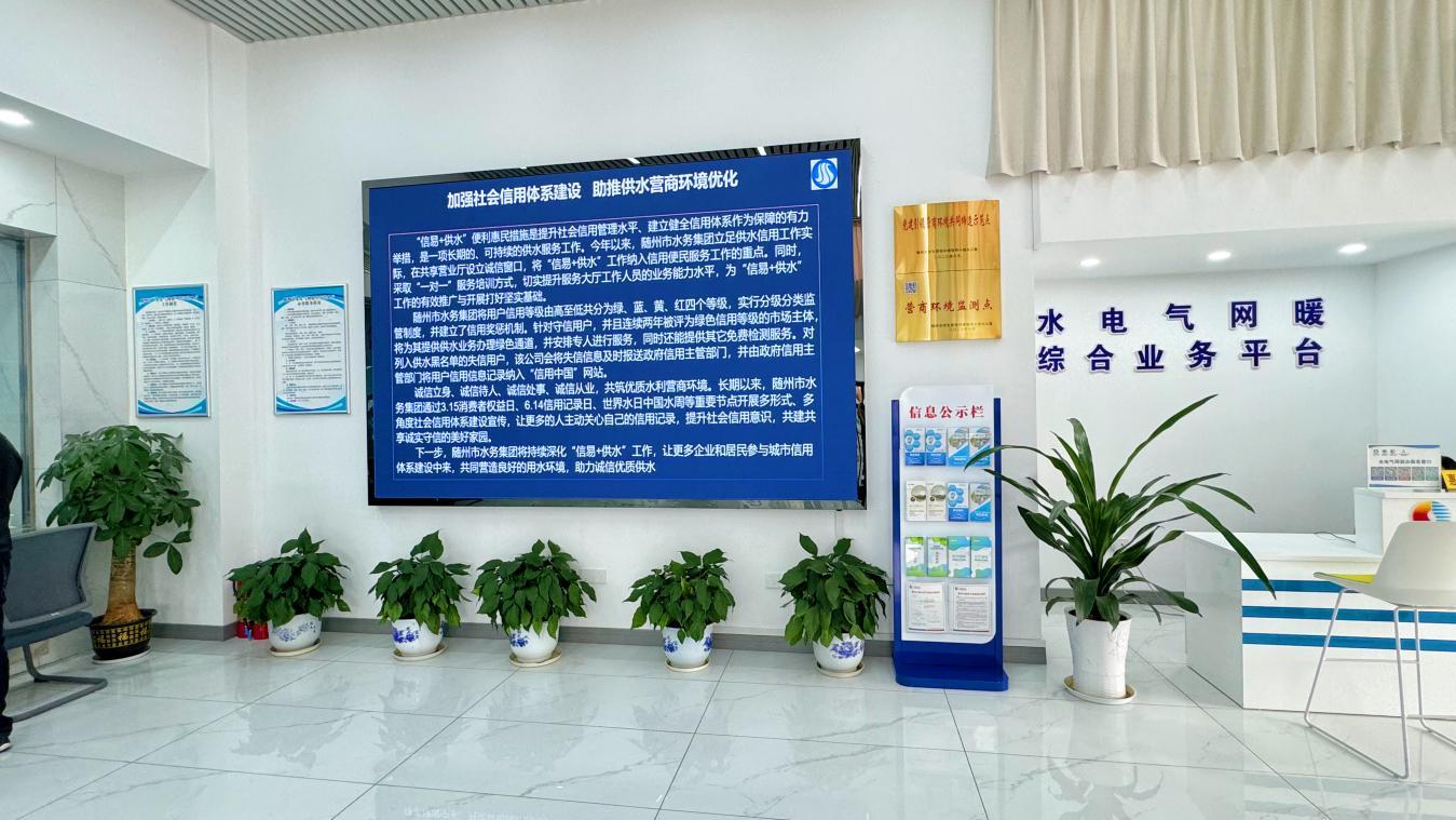 隨州水務(wù)集團(tuán)結(jié)合“世界水日”“中國水周”等重要節(jié)點(diǎn),開展一系列供水誠信服務(wù)進(jìn)社區(qū)宣傳活動(dòng),通過“水電氣”共享營業(yè)廳屏幕滾動(dòng)播放宣傳視頻,還利用“隨州水務(wù)”微信公眾號、官方網(wǎng)站和新媒體平臺等各類宣傳途徑,宣傳供水信用服務(wù)體系建設(shè),為推動(dòng)供水信用體系建設(shè)落地落實(shí)打下堅(jiān)實(shí)基礎(chǔ)。