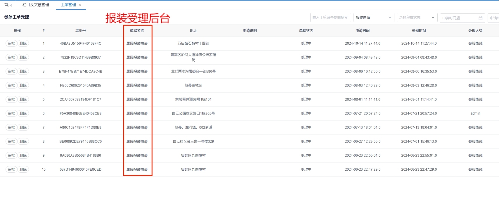 1.報(bào)裝辦理入口操作截圖