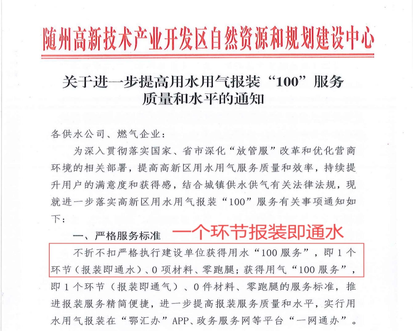 隨州市高新區(qū)出臺用水報(bào)裝相關(guān)文件