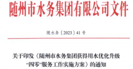 2.關(guān)于印發(fā)《隨州市水務(wù)集團(tuán)獲得用水優(yōu)化升級四零服務(wù)工作實(shí)施方案》的通知