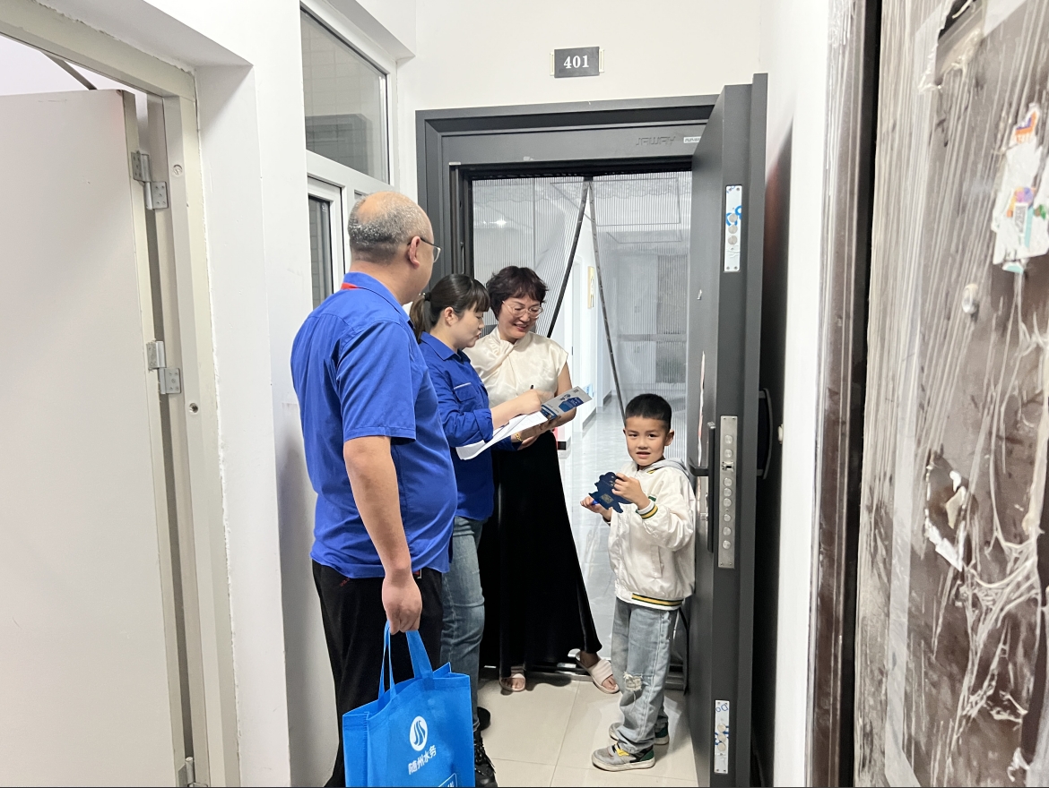 活動現(xiàn)場,水務工作人員化整為零、分組而行,輕叩一扇扇居民家門,讓 “藍色服務” 走進萬家。“阿姨,您看現(xiàn)在用手機就能繳水費,還能隨時查用水量呢!” 在居民王女士家中,小區(qū)網(wǎng)格員手持手機,指尖在 “隨州水務” 公眾號界面流暢滑動,賬單查詢、故障報修等功能演示得清晰明了,同時將用水安全知識化作通俗易懂的家常話,娓娓道來。記錄用戶信息的筆尖在紙上沙沙作響,每一個細節(jié)都彰顯著服務的溫度。這般貼心周到的模樣,惹得居民們笑意融融:“這群‘藍朋友’比外賣小哥還及時、還用心!”