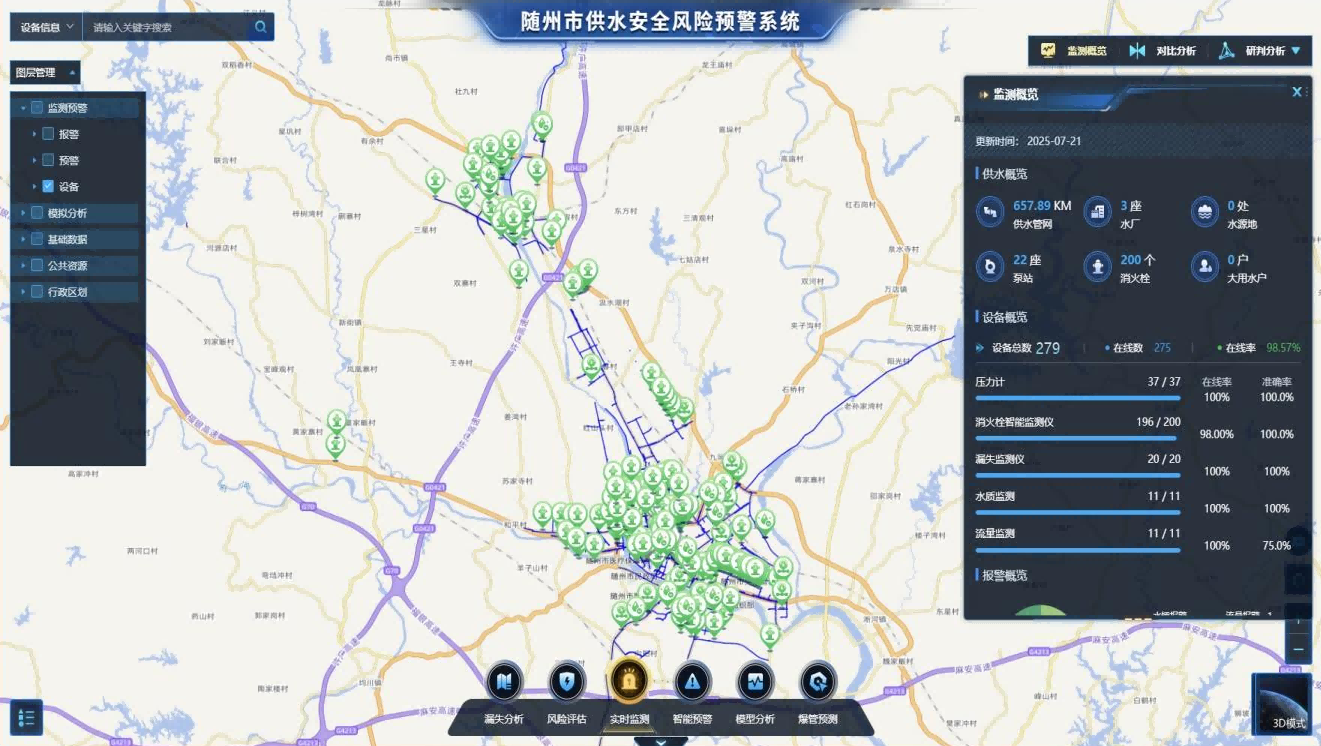 此次智慧水務(wù)建設(shè)的核心成果,是搭建起全市統(tǒng)一的智慧水務(wù)綜合管理平臺。這一平臺猶如功能強大的“中樞神經(jīng)系統(tǒng)”,高效匯聚著全市供水設(shè)施產(chǎn)生的海量實時運行數(shù)據(jù)。借助深度的數(shù)據(jù)挖掘、智能分析與可視化呈現(xiàn)技術(shù),實現(xiàn)了從水源、水廠、管網(wǎng)到二次供水乃至用戶終端的全鏈條精細化管理。它不僅讓供水服務(wù)的響應(yīng)速度得到顯著提升,更使隨州水務(wù)的運營效率大幅優(yōu)化,為城市水資源的科學(xué)調(diào)度和高效利用提供了堅實有力的決策支撐。